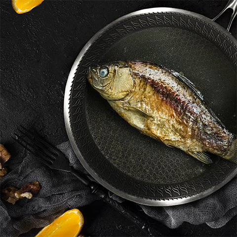 Experience versatile cooking with the Honeycomb Griddle Pan: excellent heat distribution, non-stick surface, and a durable design for perfect grilling.